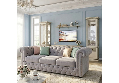 Диван Честер, Д3 Серый (Velvet Lux 45), Микровельвет